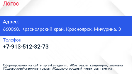 Логос по адресу 660068, Красноярский край, Красноярск, Мичурина, 3 в дальнейшем Организация, размещена в следующих категориях: