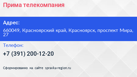 Прима, телекомпания по адресу 660049, Красноярский край, Красноярск, проспект Мира, 27 в дальнейшем Организация, размещена в следующих категориях: