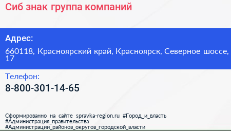 Сиб-знак, группа компаний по адресу 660118, Красноярский край, Красноярск, Северное шоссе, 17 в дальнейшем Организация, размещена в следующих категориях: