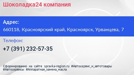 Шоколадка24, компания по адресу 660118, Красноярский край, Красноярск, Урванцева, 7 в дальнейшем Организация, размещена в следующих категориях: