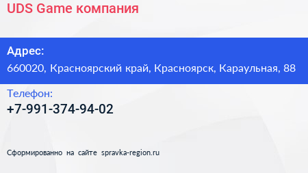 UDS Game, компания по адресу 660020, Красноярский край, Красноярск, Караульная, 88 в дальнейшем Организация, размещена в следующих категориях: