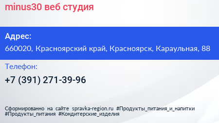 minus30, веб-студия по адресу 660020, Красноярский край, Красноярск, Караульная, 88 в дальнейшем Организация, размещена в следующих категориях: