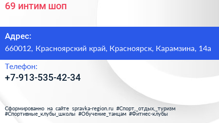69, интим-шоп по адресу 660012, Красноярский край, Красноярск, Карамзина, 14а в дальнейшем Организация, размещена в следующих категориях: