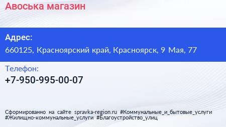 Авоська, магазин по адресу 660125, Красноярский край, Красноярск, 9 Мая, 77 в дальнейшем Организация, размещена в следующих категориях: