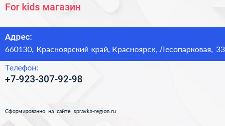 For kids, магазин по адресу 660130, Красноярский край, Красноярск, Лесопарковая, 33 в дальнейшем Организация, размещена в следующих категориях: