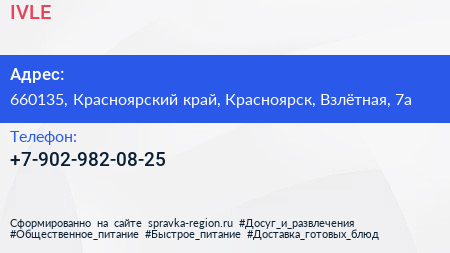 IVLE по адресу 660135, Красноярский край, Красноярск, Взлётная, 7а в дальнейшем Организация, размещена в следующих категориях:
