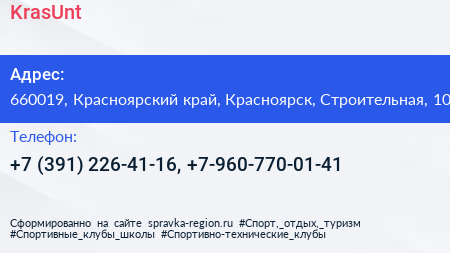 KrasUnt по адресу 660019, Красноярский край, Красноярск, Строительная, 10 в дальнейшем Организация, размещена в следующих категориях: