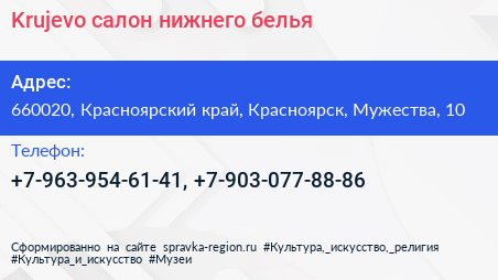 Krujevo, салон нижнего белья по адресу 660020, Красноярский край, Красноярск, Мужества, 10 в дальнейшем Организация, размещена в следующих категориях: