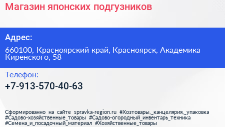 Магазин японских подгузников по адресу 660100, Красноярский край, Красноярск, Академика Киренского, 58 в дальнейшем Организация, размещена в следующих категориях: