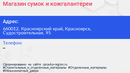 Магазин сумок и кожгалантереи по адресу 660012, Красноярский край, Красноярск, Судостроительная, 95 в дальнейшем Организация, размещена в следующих категориях: