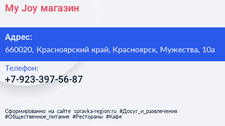 My Joy, магазин по адресу 660020, Красноярский край, Красноярск, Мужества, 10а в дальнейшем Организация, размещена в следующих категориях: