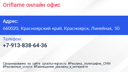 Oriflame, онлайн-офис по адресу 660020, Красноярский край, Красноярск, Линейная, 50 в дальнейшем Организация, размещена в следующих категориях: