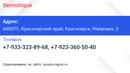Semiotique по адресу 660075, Красноярский край, Красноярск, Маерчака, 3 в дальнейшем Организация, размещена в следующих категориях: