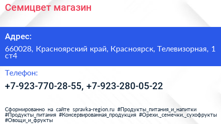 Семицвет, магазин по адресу 660028, Красноярский край, Красноярск, Телевизорная, 1 ст4 в дальнейшем Организация, размещена в следующих категориях: