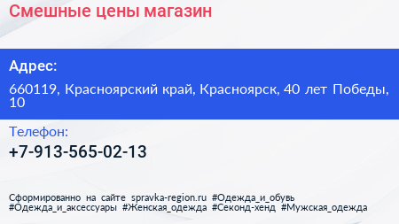 Смешные цены, магазин по адресу 660119, Красноярский край, Красноярск, 40 лет Победы, 10 в дальнейшем Организация, размещена в следующих категориях: