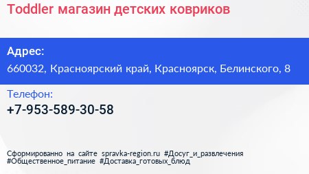 Toddler, магазин детских ковриков по адресу 660032, Красноярский край, Красноярск, Белинского, 8 в дальнейшем Организация, размещена в следующих категориях: