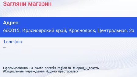 Загляни, магазин по адресу 660015, Красноярский край, Красноярск, Центральная, 2а в дальнейшем Организация, размещена в следующих категориях: