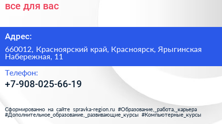 все для вас по адресу 660012, Красноярский край, Красноярск, Ярыгинская Набережная, 11 в дальнейшем Организация, размещена в следующих категориях:
