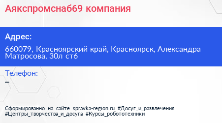Аякспромснаб69, компания по адресу 660079, Красноярский край, Красноярск, Александра Матросова, 30л ст6 в дальнейшем Организация, размещена в следующих категориях: