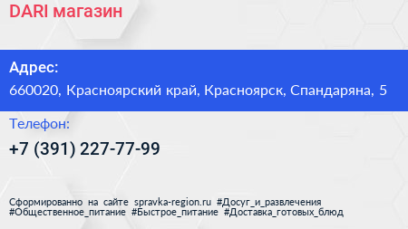 DARI, магазин по адресу 660020, Красноярский край, Красноярск, Спандаряна, 5 в дальнейшем Организация, размещена в следующих категориях: