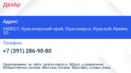 ДезАр по адресу 660017, Красноярский край, Красноярск, Красной Армии, 10 в дальнейшем Организация, размещена в следующих категориях: