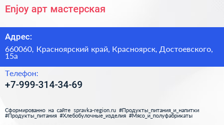 Enjoy, арт-мастерская по адресу 660060, Красноярский край, Красноярск, Достоевского, 15а в дальнейшем Организация, размещена в следующих категориях: