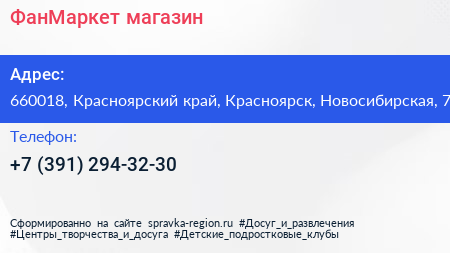 ФанМаркет, магазин по адресу 660018, Красноярский край, Красноярск, Новосибирская, 7 в дальнейшем Организация, размещена в следующих категориях: