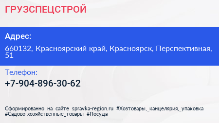 ГРУЗСПЕЦСТРОЙ по адресу 660132, Красноярский край, Красноярск, Перспективная, 51 в дальнейшем Организация, размещена в следующих категориях: