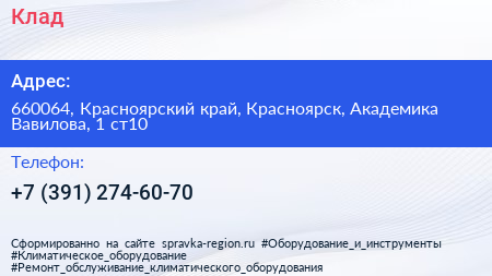 Клад по адресу 660064, Красноярский край, Красноярск, Академика Вавилова, 1 ст10 в дальнейшем Организация, размещена в следующих категориях:
