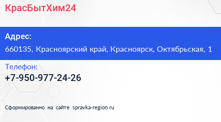 КрасБытХим24 по адресу 660135, Красноярский край, Красноярск, Октябрьская, 1 в дальнейшем Организация, размещена в следующих категориях: