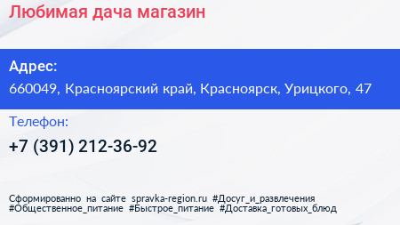 Любимая дача, магазин по адресу 660049, Красноярский край, Красноярск, Урицкого, 47 в дальнейшем Организация, размещена в следующих категориях: