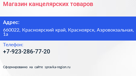 Магазин канцелярских товаров по адресу 660022, Красноярский край, Красноярск, Аэровокзальная, 1а в дальнейшем Организация, размещена в следующих категориях: