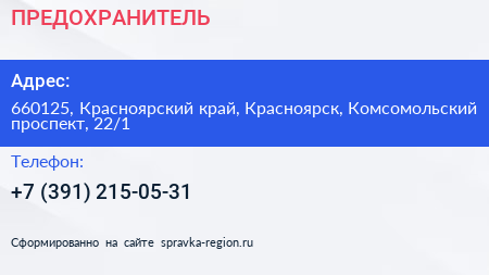 ПРЕДОХРАНИТЕЛЬ по адресу 660125, Красноярский край, Красноярск, Комсомольский проспект, 22/1 в дальнейшем Организация, размещена в следующих категориях:
