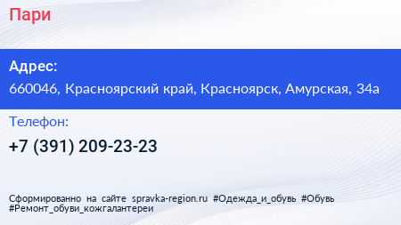 Пари по адресу 660046, Красноярский край, Красноярск, Амурская, 34а в дальнейшем Организация, размещена в следующих категориях: