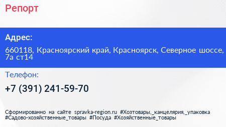 Репорт по адресу 660118, Красноярский край, Красноярск, Северное шоссе, 7а ст14 в дальнейшем Организация, размещена в следующих категориях: