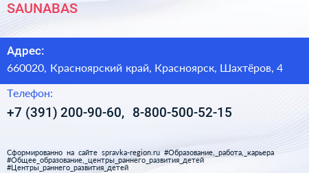 SAUNABAS по адресу 660020, Красноярский край, Красноярск, Шахтёров, 4 в дальнейшем Организация, размещена в следующих категориях:
