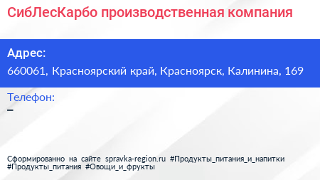 СибЛесКарбо, производственная компания по адресу 660061, Красноярский край, Красноярск, Калинина, 169 в дальнейшем Организация, размещена в следующих категориях: