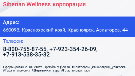 Siberian Wellness, корпорация по адресу 660098, Красноярский край, Красноярск, Авиаторов, 44 в дальнейшем Организация, размещена в следующих категориях: