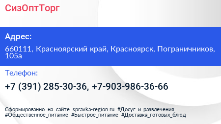 СизОптТорг по адресу 660111, Красноярский край, Красноярск, Пограничников, 105а в дальнейшем Организация, размещена в следующих категориях: