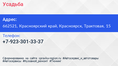 Усадьба по адресу 662521, Красноярский край, Красноярск, Трактовая, 15 в дальнейшем Организация, размещена в следующих категориях: