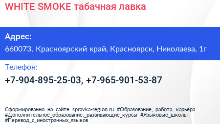 WHITE SMOKE, табачная лавка по адресу 660073, Красноярский край, Красноярск, Николаева, 1г в дальнейшем Организация, размещена в следующих категориях: