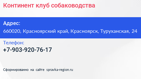 Континент, клуб собаководства по адресу 660020, Красноярский край, Красноярск, Туруханская, 24 в дальнейшем Организация, размещена в следующих категориях:
