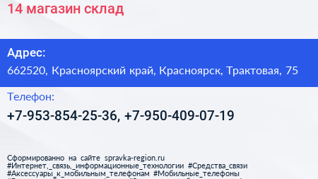 №14, магазин-склад по адресу 662520, Красноярский край, Красноярск, Трактовая, 75 в дальнейшем Организация, размещена в следующих категориях: