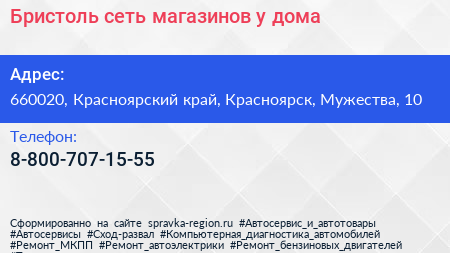 Бристоль, сеть магазинов у дома по адресу 660020, Красноярский край, Красноярск, Мужества, 10 в дальнейшем Организация, размещена в следующих категориях: