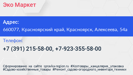 Эко Маркет по адресу 660077, Красноярский край, Красноярск, Алексеева, 54а в дальнейшем Организация, размещена в следующих категориях:
