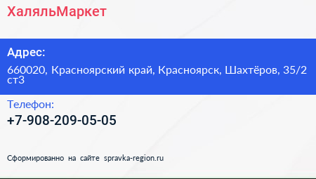 ХаляльМаркет по адресу 660020, Красноярский край, Красноярск, Шахтёров, 35/2 ст3 в дальнейшем Организация, размещена в следующих категориях: