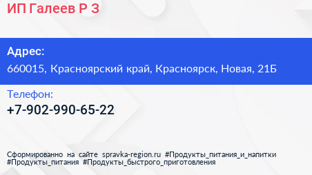 ИП Галеев Р.З. по адресу 660015, Красноярский край, Красноярск, Новая, 21Б в дальнейшем Организация, размещена в следующих категориях:
