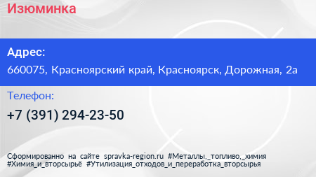 Изюминка по адресу 660075, Красноярский край, Красноярск, Дорожная, 2а в дальнейшем Организация, размещена в следующих категориях: