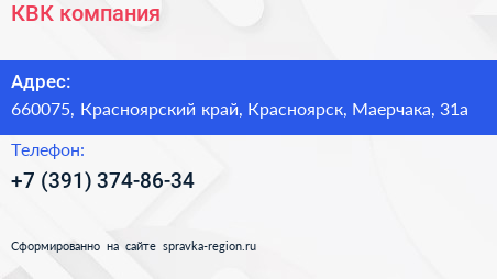КВК, компания по адресу 660075, Красноярский край, Красноярск, Маерчака, 31а в дальнейшем Организация, размещена в следующих категориях: