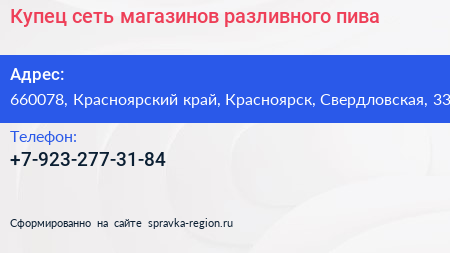 Купец, сеть магазинов разливного пива по адресу 660078, Красноярский край, Красноярск, Свердловская, 33 в дальнейшем Организация, размещена в следующих категориях: